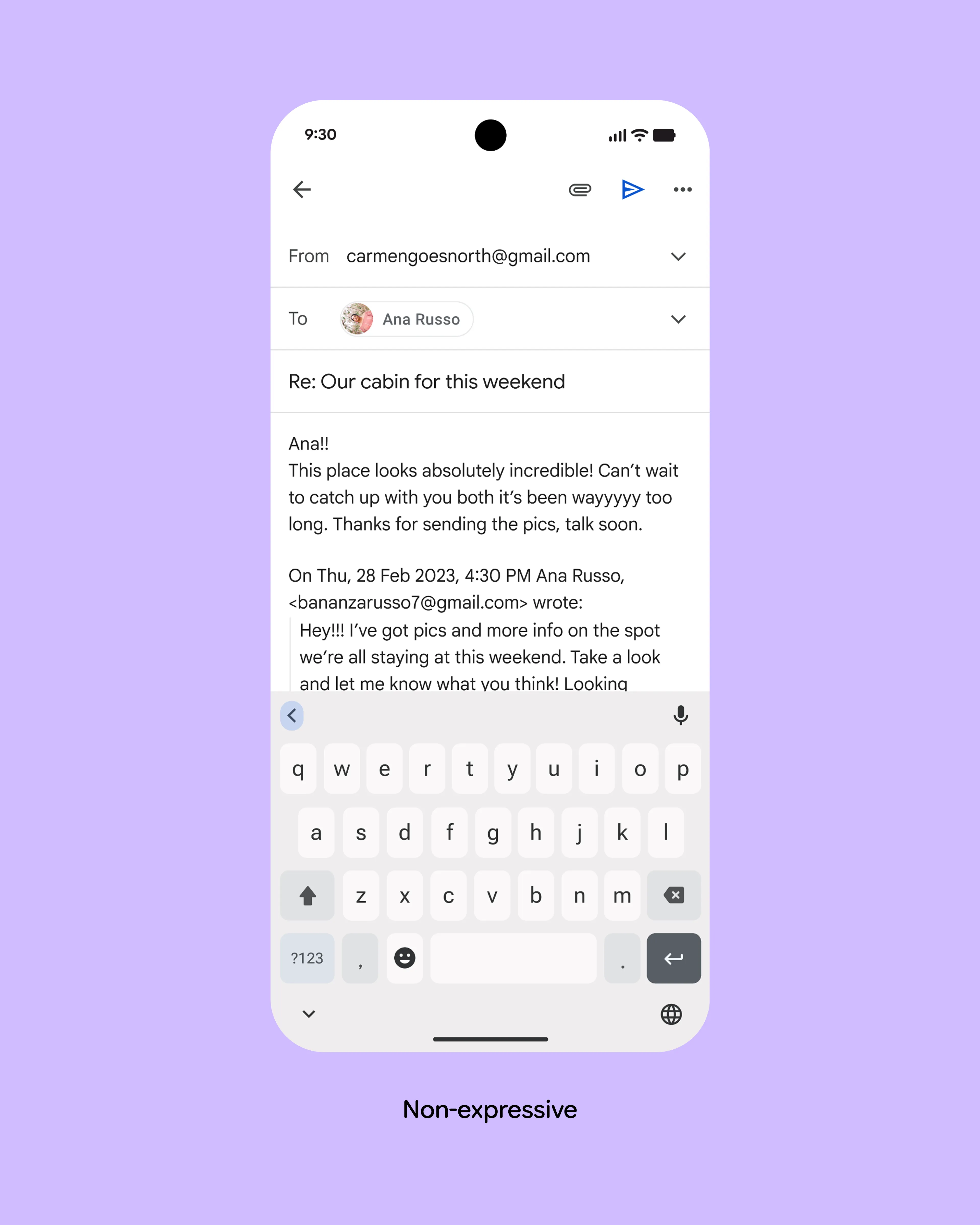 Email app with the Send button in a standard top app bar.