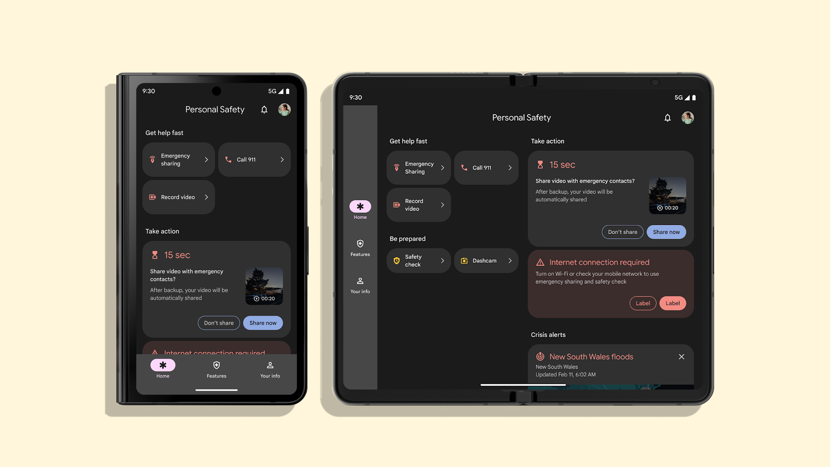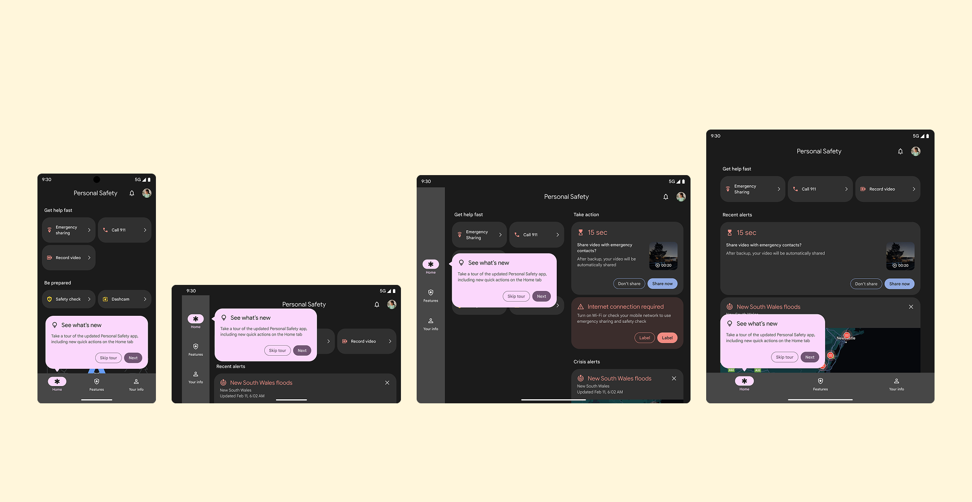 I led the visual restructuring of the app—from optimizing layouts for Foldables and Tablets to architecting system-level sign-in components. By establishing these standards, I ensured that critical safety features are consistent, intuitive, and production-ready across all Pixel devices.